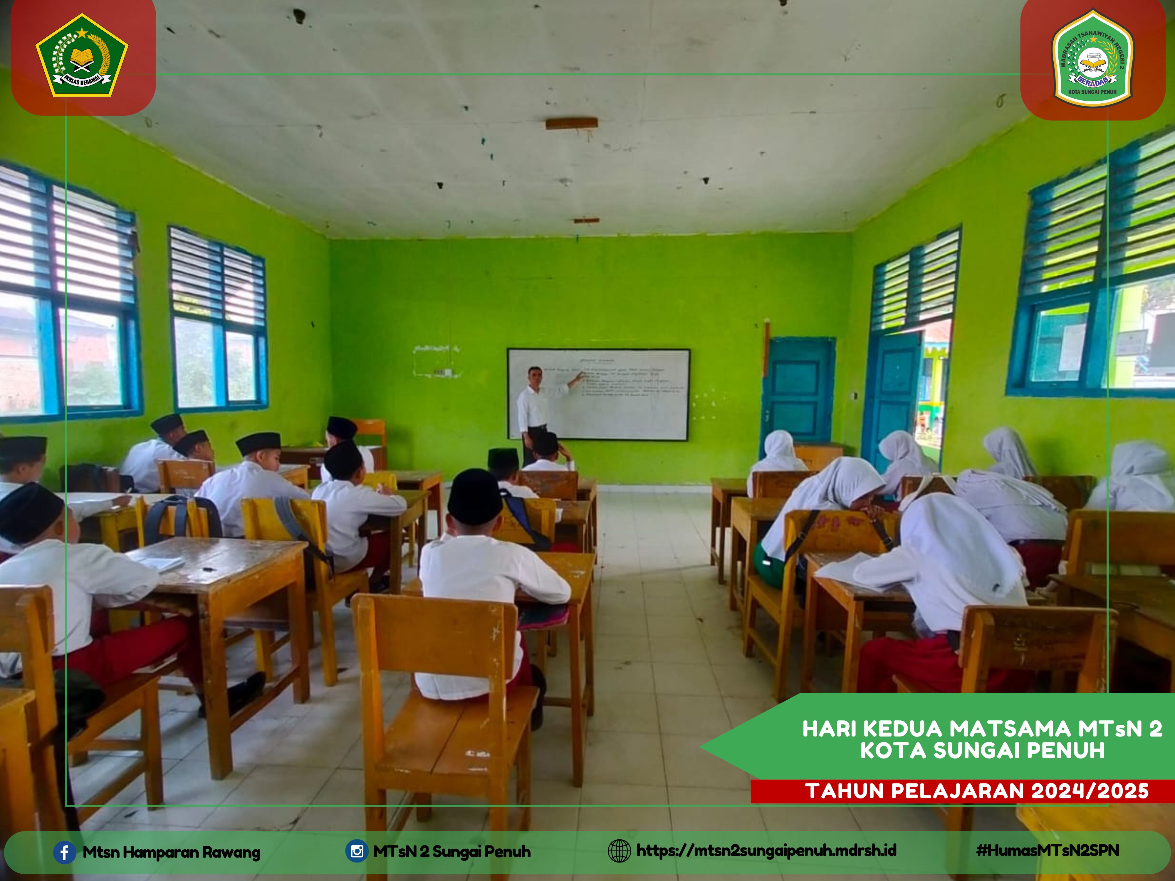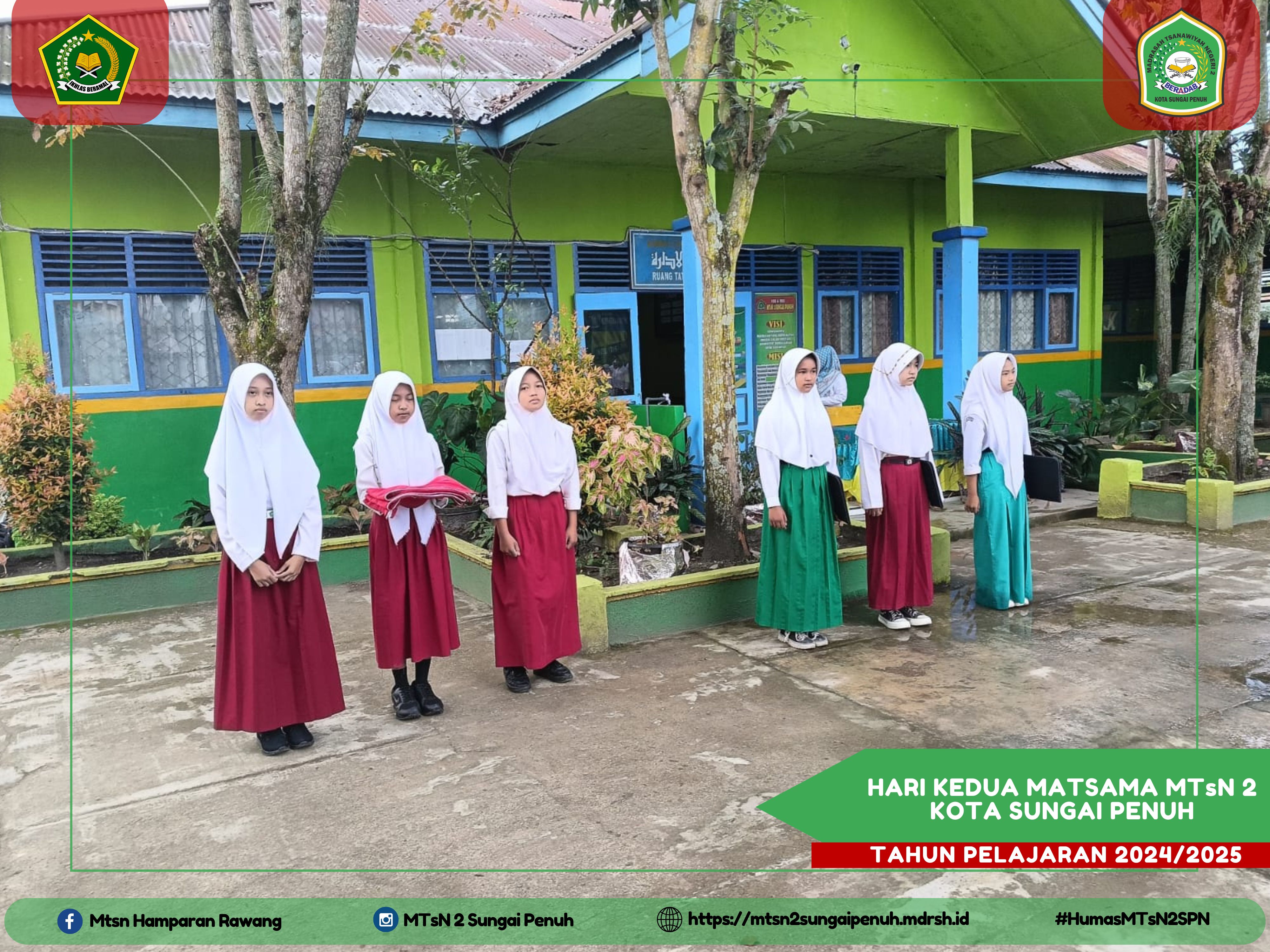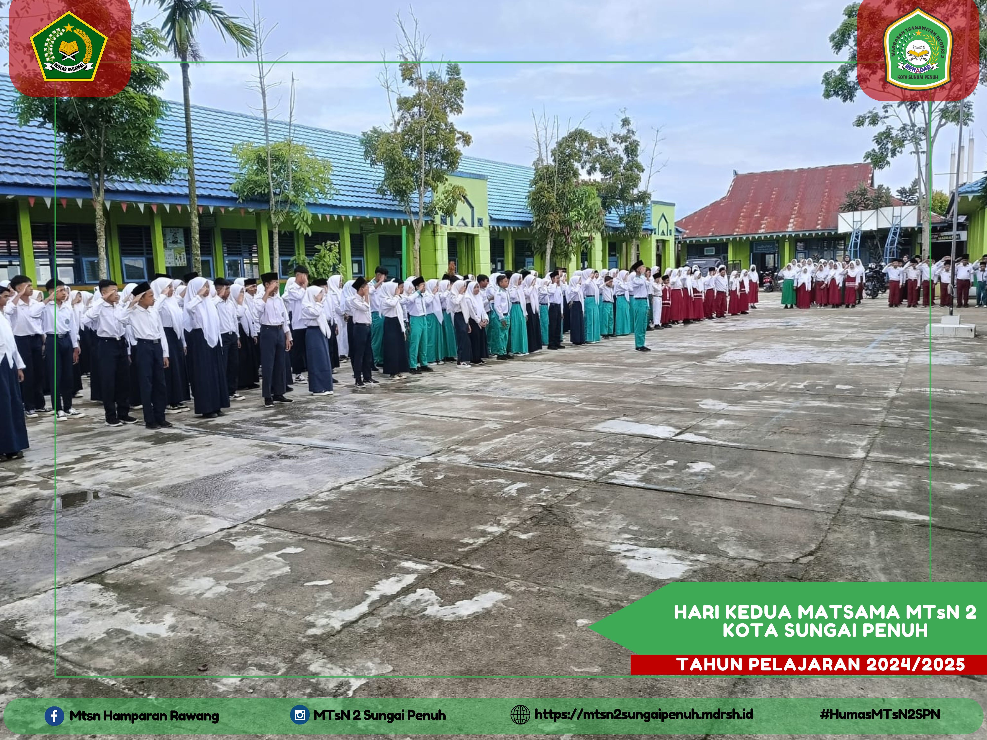 Sungai Penuh - Selasa (16/07/2024) Suasana hari Kedua pelaksanaan Masa Ta’aruf Siswa Madrasah (MATSAMA) Tahun Pelajaran 2024/2025 di MTs Negeri 2 Kota Sungai Penuh ini terlihat berjalan lancar dan tertib.