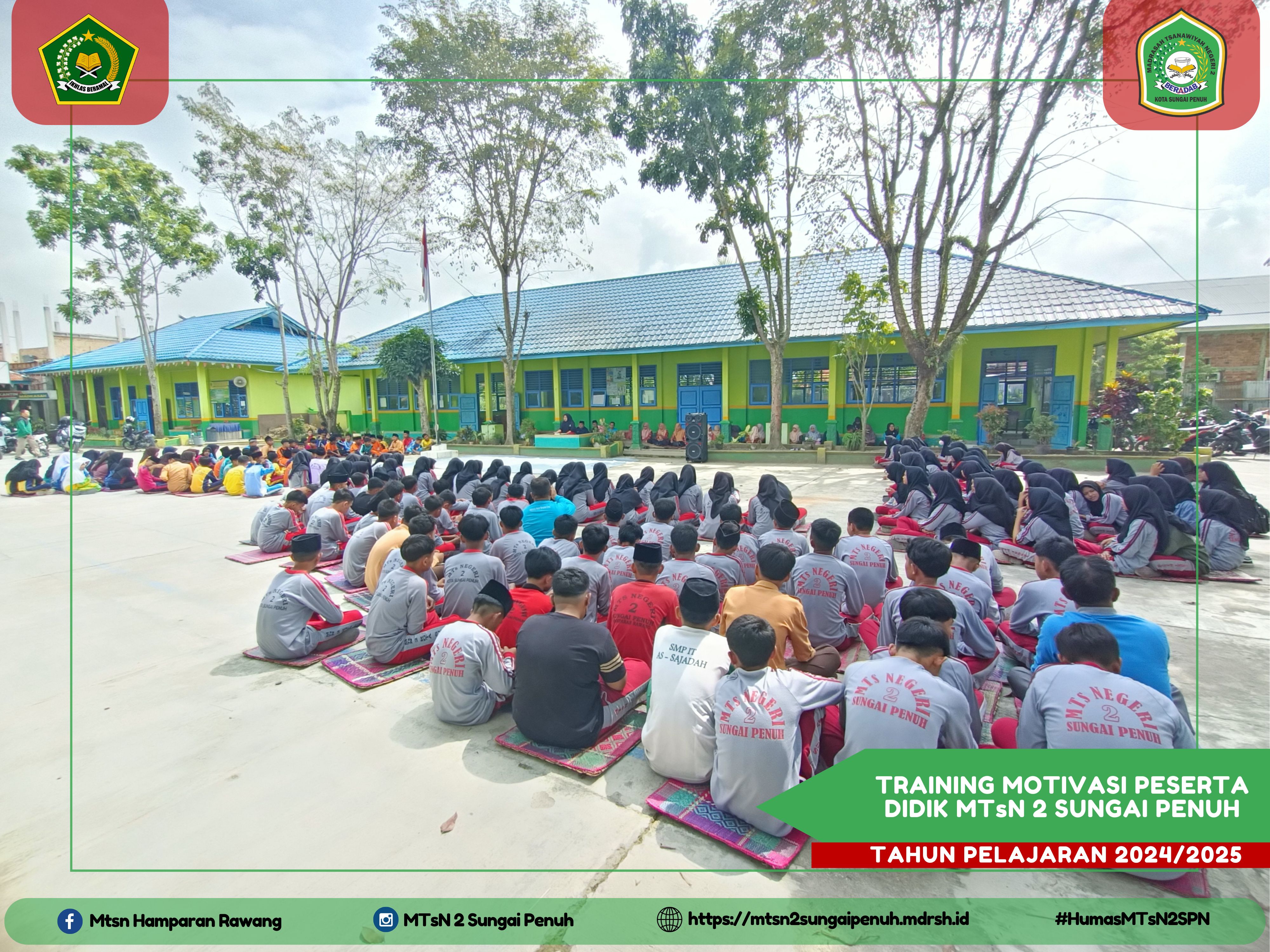 Sungai Penuh - Sabtu (20/07/2024) Dalam melaksanakan kegiatan rutin harian seperti belajar, tak jarang siswa merasa jenuh atau bosan. Untuk mengatasi hal tersebut dan dalam rangka meningkatkan semangat belajar siswa dalam menghadapi Tahun Pelajaran Baru MTsN 2 Kota Sungai Penuh mengadakan Training Motivasi Belajar.