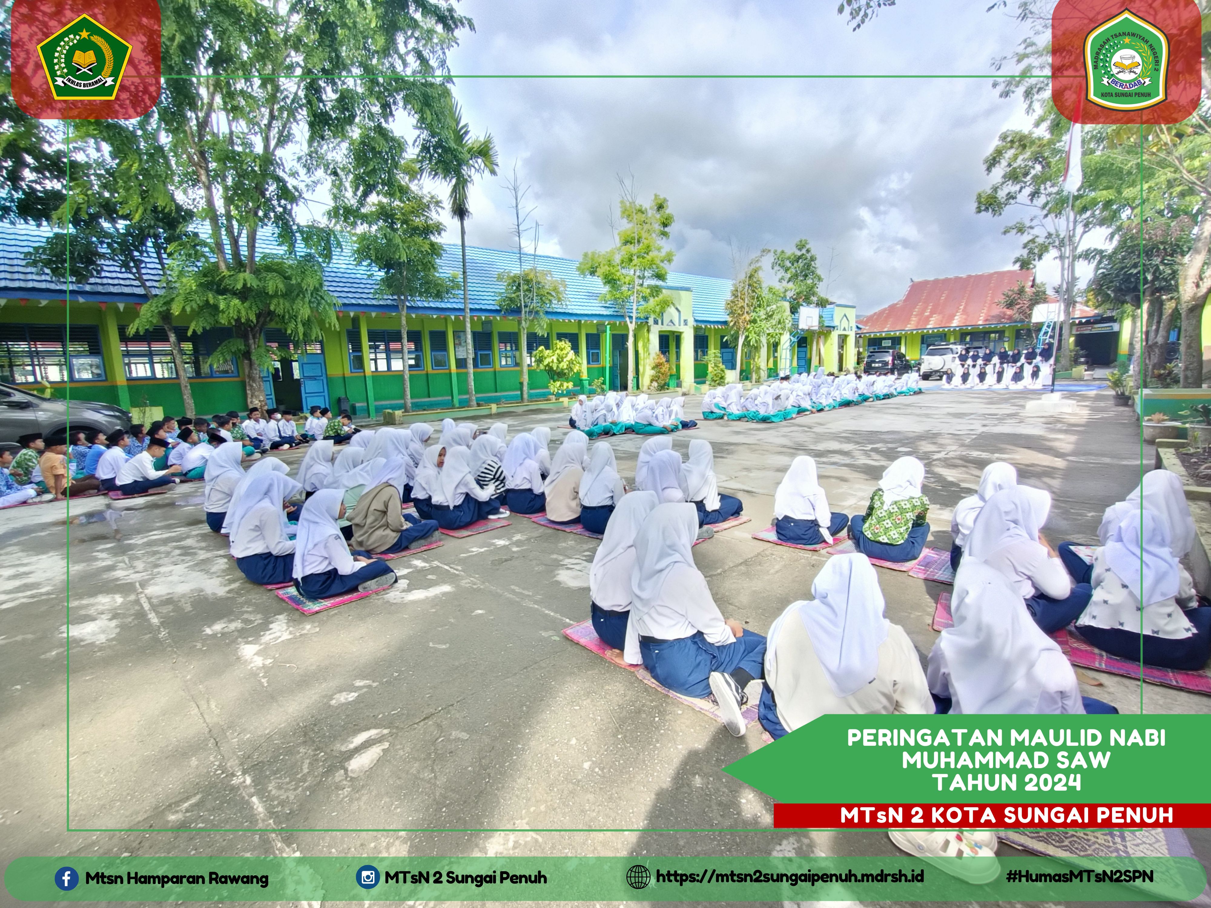 Sungai Penuh – Rabu (18/09/2024) Dalam meningkatkan keimanan dan ketaqwaan Keluarga Besar Madrasah Tsanawiyah Negeri 2 Kota Sungai Penuh memperingati Hari Kelahiran Nabi Besar Muhammad SAW. Acara yang dilaksanakan di halaman dan diikuti oleh seluruh siswa dan siswi, dewan guru serta staf Tata Usaha.