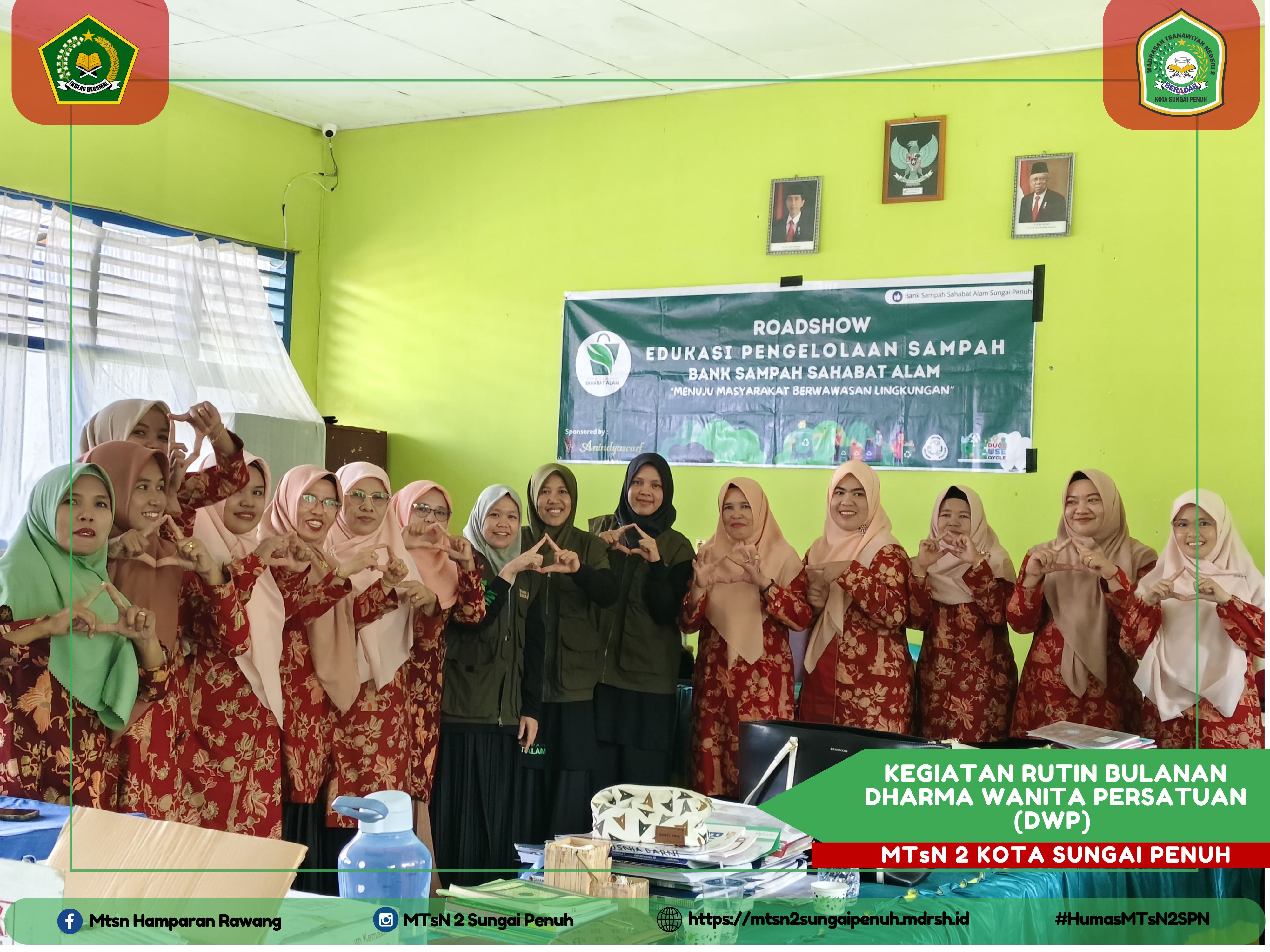 Selanjutnya ketua DWP juga menyampaikan bahwa pertemuan atau agenda DWP rutin yang dilaksanakan ini merupakan salah satu wadah untuk mempererat persatuan dan kesatuan, menjaga silaturahmi di antara sesama anggota Dharma Wanita serta mewujudkan lembaga organisasi Dharma Wanita di MTs Negeri 2 Kota Sungai Penuh selalu kompak ujarnya._Rfz