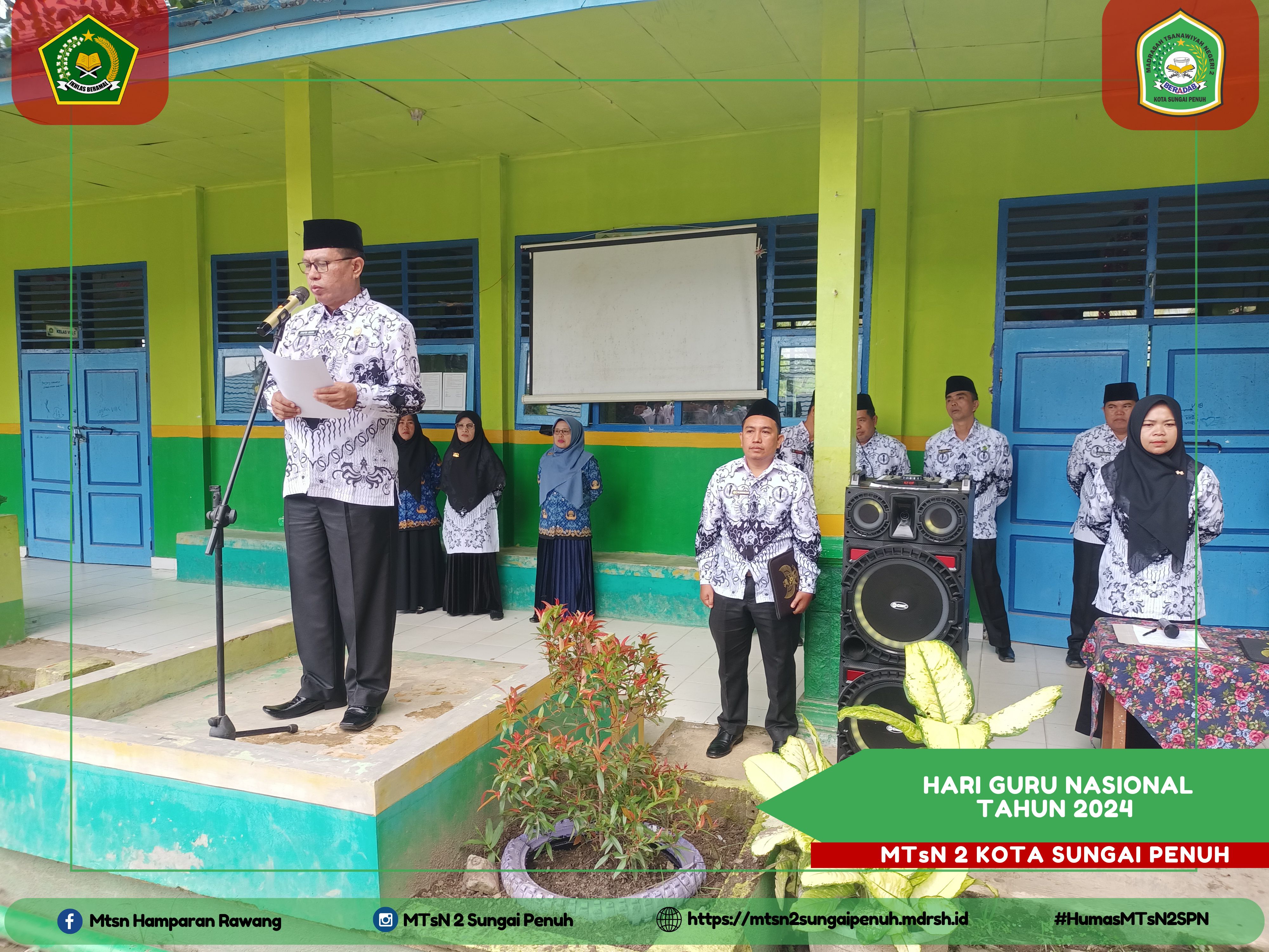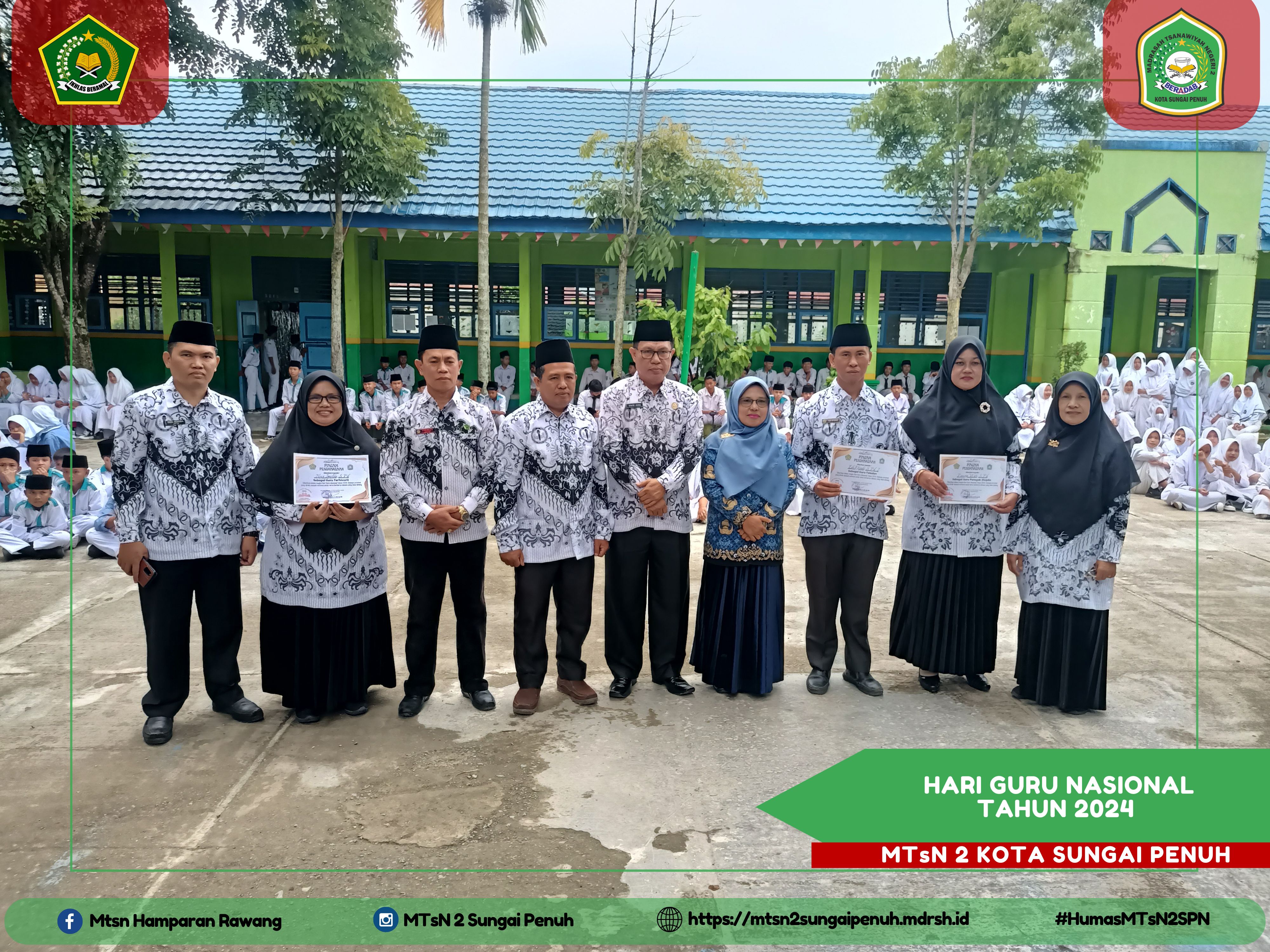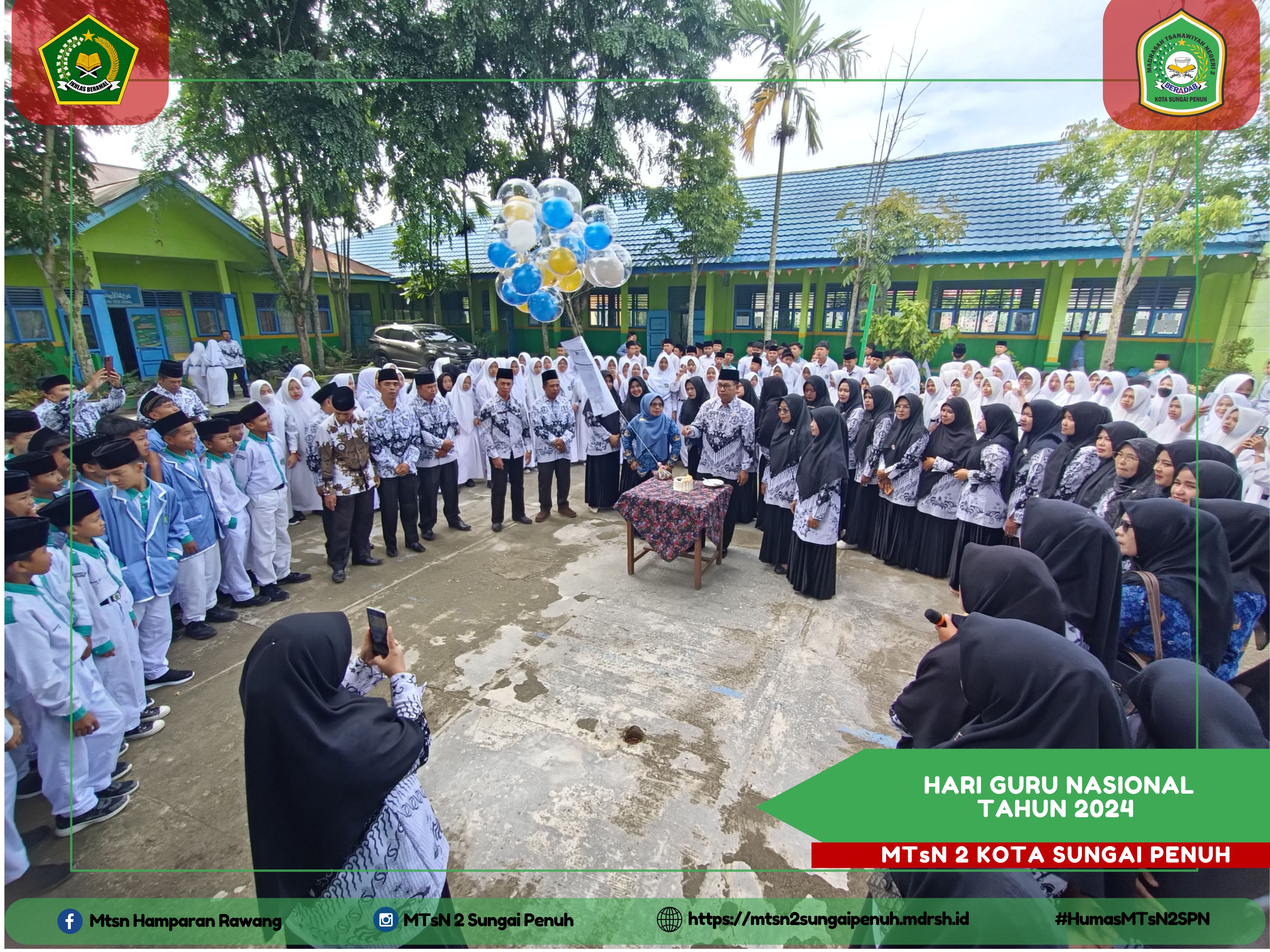 Pada tahun ini MTs Negeri 2 Kota Sungai Penuh merayakan dengan penuh kegembiraan peringatan Hari Guru Nasional Tahun 2024, yang juga sekaligus menjadi perayaan PGRI. Acara berlangsung di Lapangan MTs Negeri 2 Kota Sungai Penuh dihadiri para siswa guru dan pegawai, yang istimewa adalah para guru yang secara sukses menjadi petugas pada upacara tersebut.