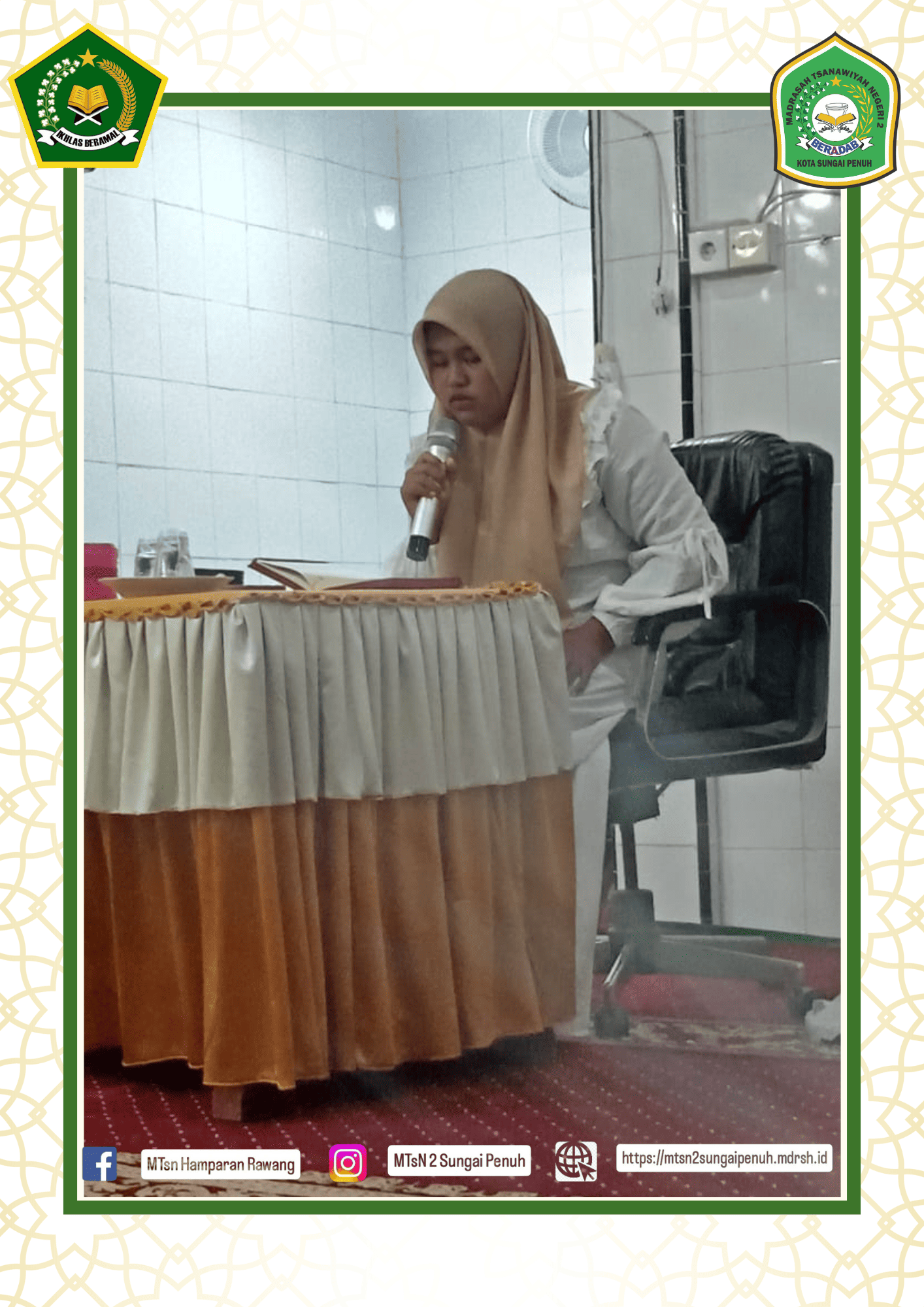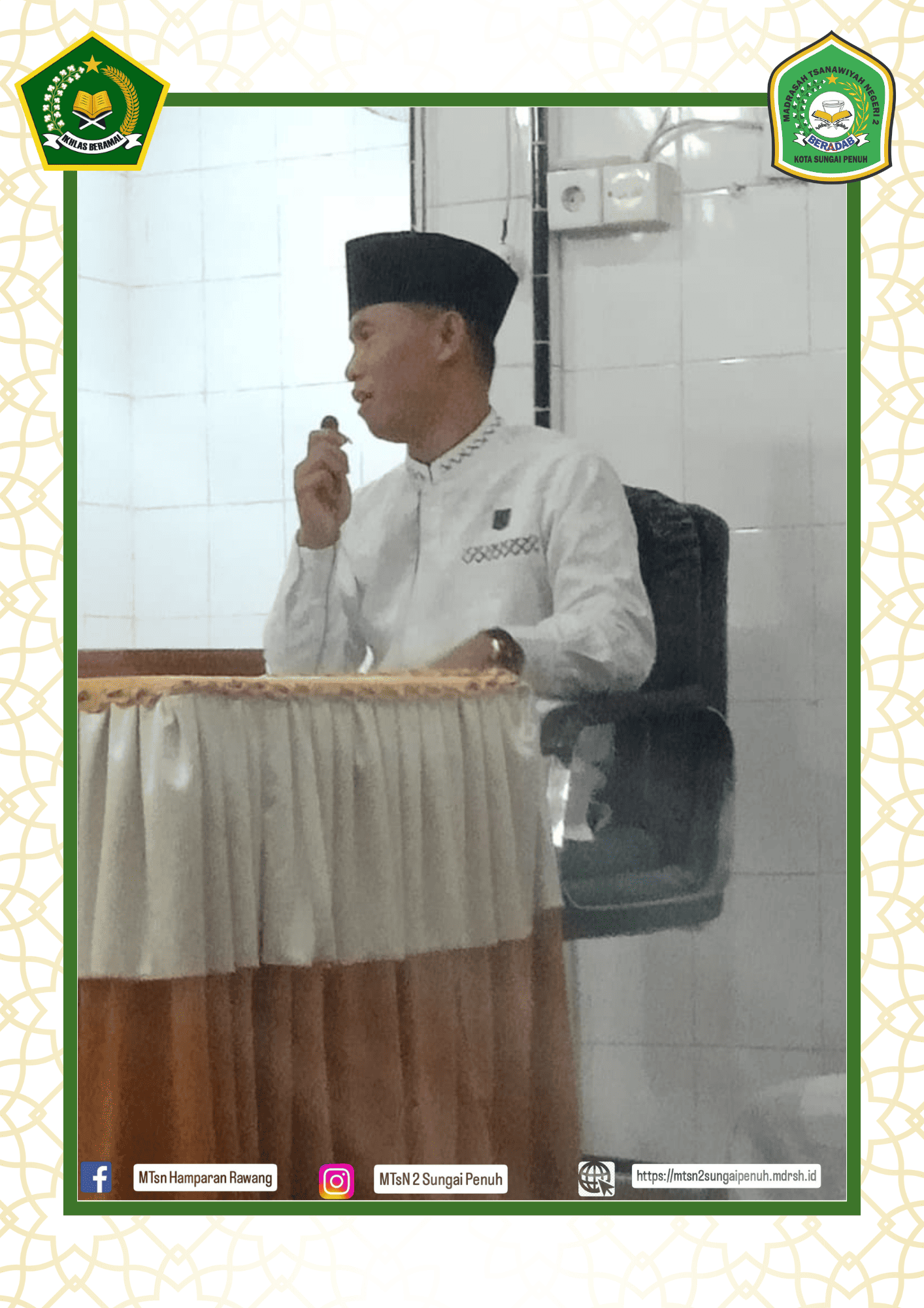 MTsN 2 kota Sungai Penuh menjadi pelaksana acara tersebut baik guru maupun siswi punya andil tersendiri pada kegiatan safari dakwah tersebut, mulai dari ceramah yang di isi oleh guru MTsN 2 Sungai Penuh yakni buya Edi Efendi, S.Pd.I.