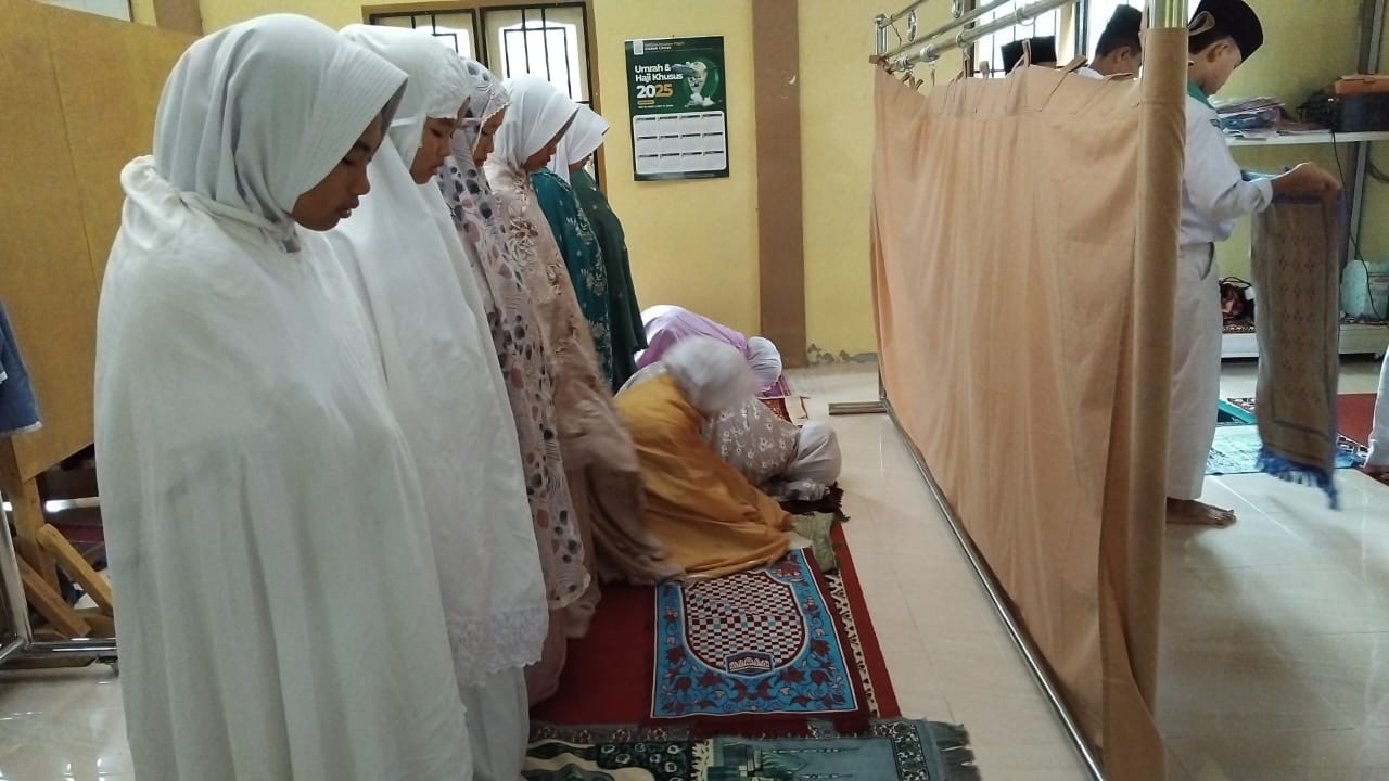 Suasana sholat sangat tenang dan khidmat. Siswa-siswi berbaris dengan rapi dan mengikuti gerakan sholat dengan penuh konsentrasi. Guru-guru juga bergabung dengan mereka, membimbing dan memotivasi mereka untuk meningkatkan semangat ibadah.