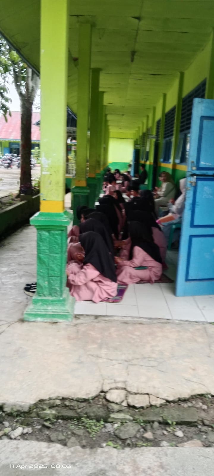 Ditengah cuaca yang gerimis kegiatan yasinan tetap di laksanakan di depan ruang kelas masing-masing di dampingi wali kelas yang duduk di antara siswa/i dan membaca yasin secara bersama-sama serta absensi pagi antar kelas yang tetap di jalankan demi memantau kehadiran siswa/i. _UK