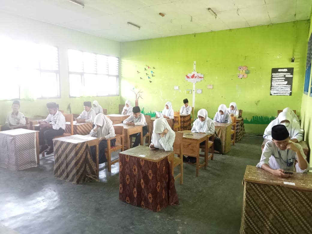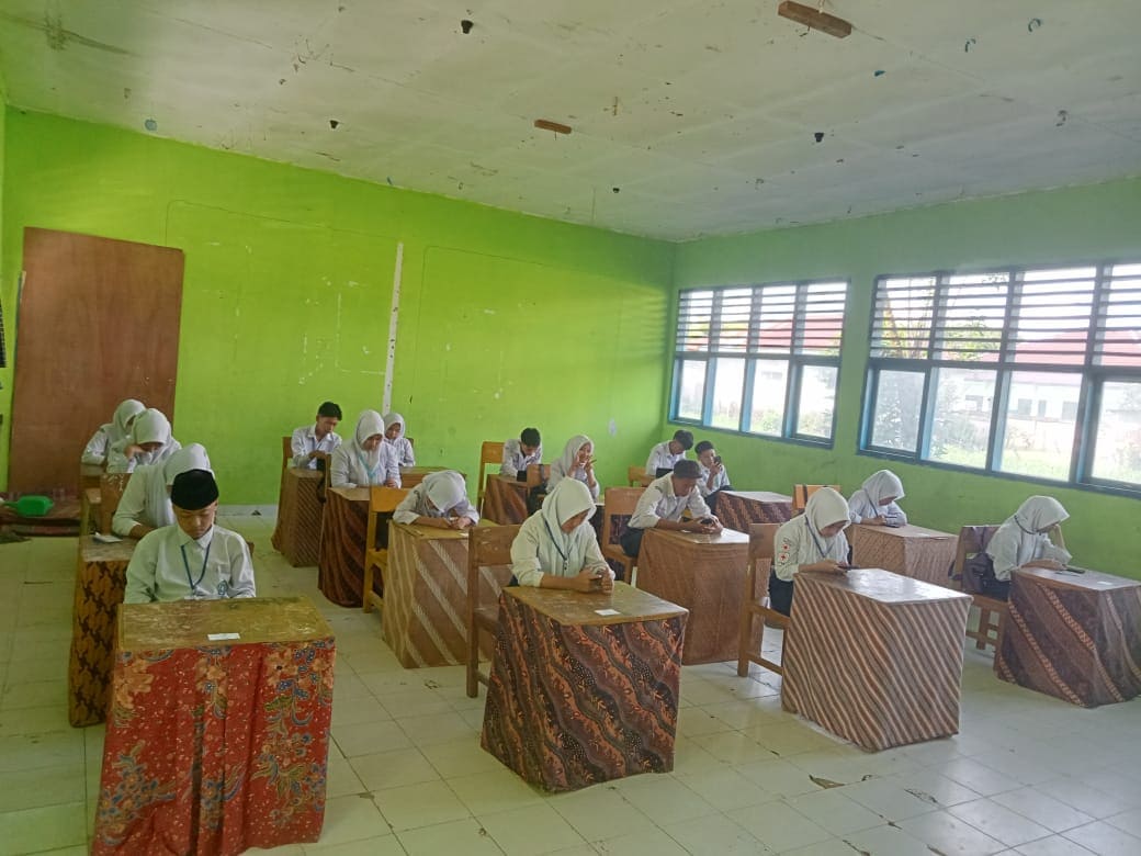 Siswa/i MTsN 2 Sungai Penuh tampak fokus mengerjakan soal-soal ujian. Mereka telah mempersiapkan diri dengan baik dan optimis menghadapi ujian akhir.