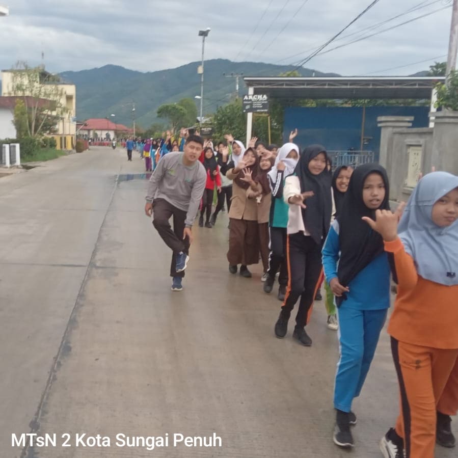 Sungai Penuh [26 Juli 2025] MTsN 2 Sungai Penuh mengadakan kegiatan jalan santai di pagi Sabtu yang bertujuan untuk meningkatkan kesehatan dan kebersamaan antar siswa. Kegiatan ini diikuti oleh seluruh siswa/i MTsN 2 Sungai Penuh.