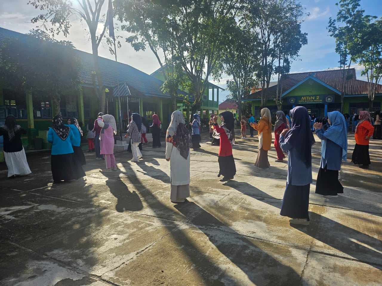 Sungai Penuh 02/08/2025– Siswa dan guru MTsN 2 Sungai Penuh melaksanakan kegiatan senam bersama pada pagi hari ini, sebagai bagian dari program rutin untuk menjaga kebugaran jasmani dan mempererat kebersamaan antar warga madrasah.