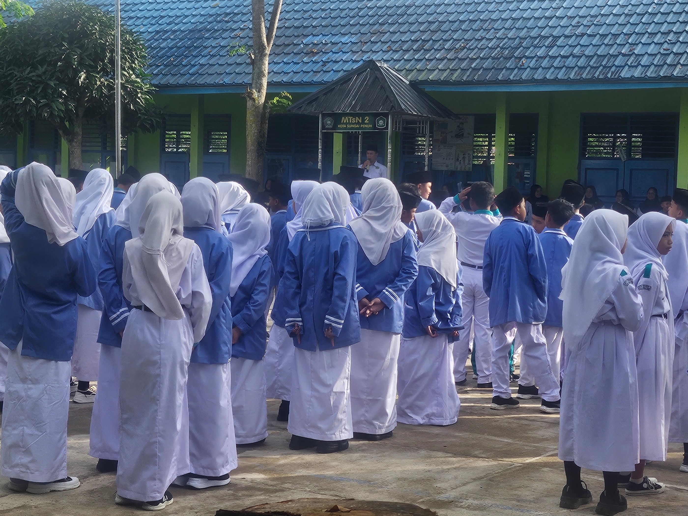 Sungai Penuh — MTsN 2 Sungai Penuh kembali melaksanakan upacara bendera rutin pada Senin (04/08/2025) di halaman madrasah. Kegiatan yang menjadi agenda mingguan ini berlangsung khidmat dan penuh semangat nasionalisme. Pada pelaksanaan kali ini, tim Pramuka mendapat kepercayaan sebagai petugas upacara.