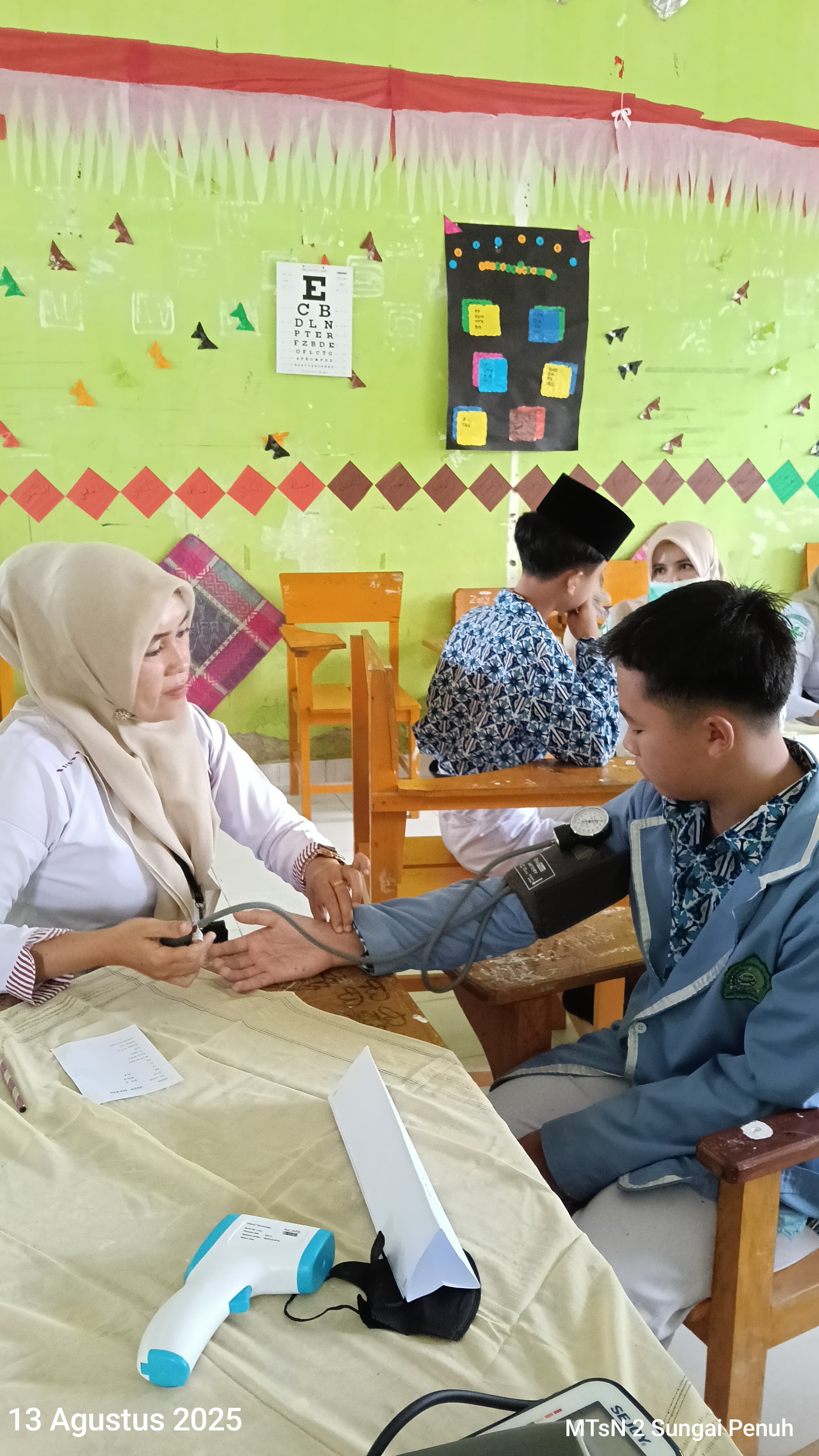 MTsN 2 Sungai Penuh baru-baru ini mengadakan pemeriksaan kesehatan gratis bagi siswa-siswinya, hasil kolaborasi antara Pemerintah Kota (Pemkot) dengan madrasah. Kegiatan ini bertujuan untuk memantau kesehatan siswa/i dan mendeteksi dini masalah kesehatan yang mungkin dialami.