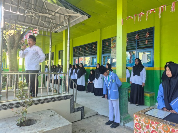 Upacara bendera di MTsN 2 Sungai Penuh berlangsung lancar pada hari Senin, 15 September 2025. Kegiatan ini merupakan agenda rutin yang dilaksanakan setiap minggu di lingkungan madrasah. Tujuan utama dari upacara ini adalah menanamkan nilai-nilai kebangsaan dan kedisiplinan kepada seluruh siswa, sekaligus memperkuat rasa persatuan di antara warga sekolah.