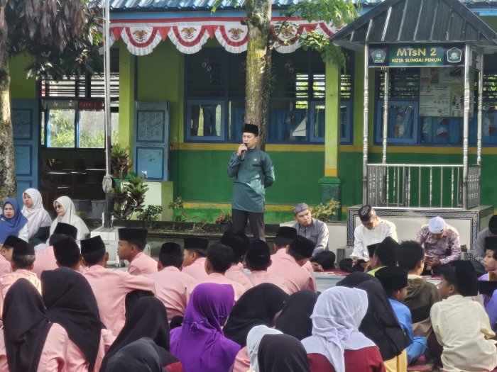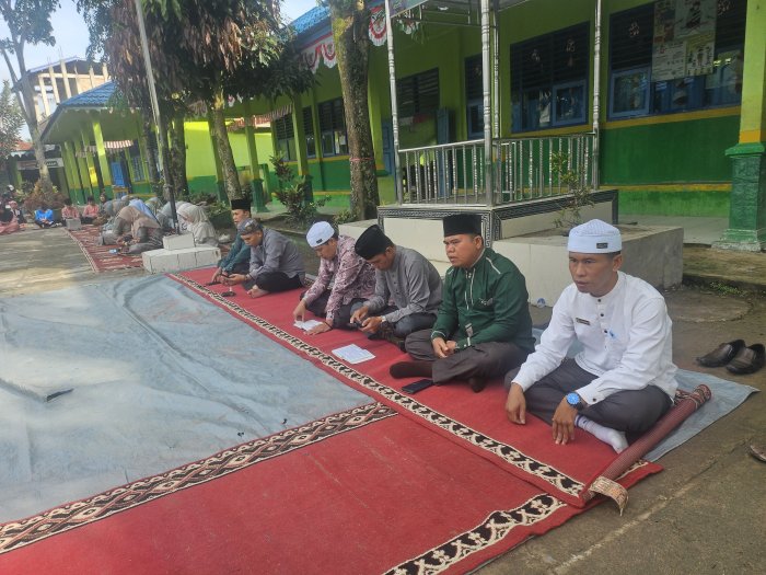 Madrasah Tsanawiyah Negeri (MTsN) Sungai Penuh menyelenggarakan kegiatan yasinan, tahlilan, dan doa bersama yang dipimpin oleh siswa kelas VIIIC pada hari Ju'mat (19/09/2025). Kegiatan ini merupakan agenda rutin yang dilaksanakan di lapangan madrasah sebagai upaya untuk meningkatkan keimanan serta mempererat kebersamaan di antara seluruh warga madrasah.