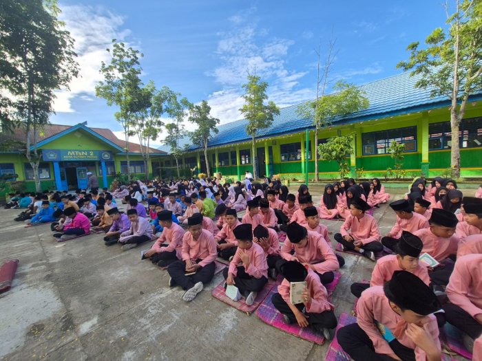 MTsN 2 Sungai Penuh mengadakan kegiatan yasinan, tahlilan, dan doa bersama yang diikuti oleh siswa dan guru pada Jumat, 3 Oktober 2025. Acara tersebut berlangsung di lapangan madrasah dengan siswa kelas VIII.E sebagai pelaksana utama. Kegiatan ini merupakan bagian dari program pembinaan karakter dan spiritualitas yang rutin dilaksanakan di sekolah tersebut.