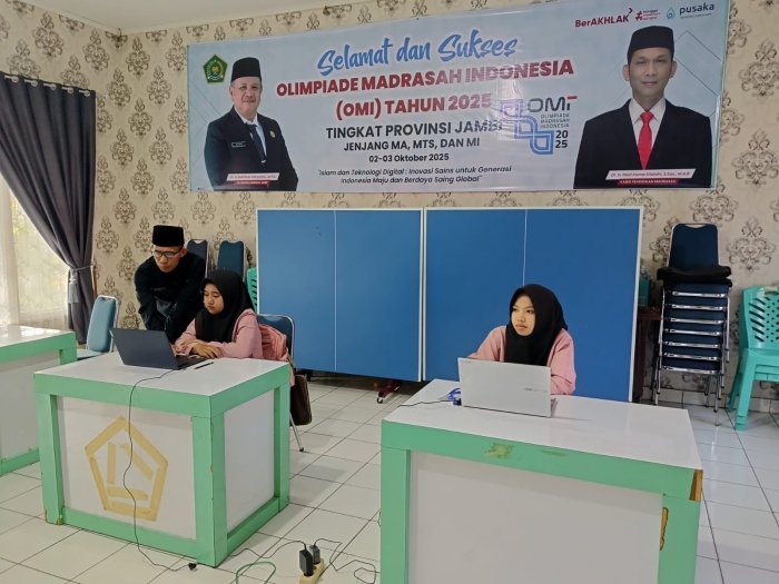 MTsN 2 Sungai Penuh mengirimkan dua siswi terbaiknya untuk mengikuti Olimpiade Madrasah Indonesia (OMI) tingkat Provinsi yang digelar pada Jumat, 3 Oktober 2025. Kegiatan ini berlangsung di aula Kantor Kementerian Agama Kota Sungai Penuh. OMI merupakan ajang bergengsi di lingkungan madrasah yang bertujuan mengasah kemampuan siswa dalam berbagai bidang akademik serta memperluas pengalaman berkompetisi di tingkat yang lebih tinggi.