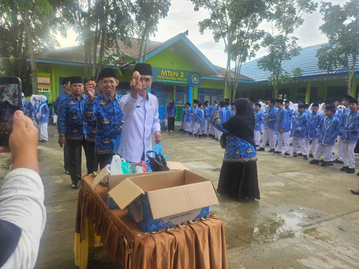 Madrasah Tsanawiyah Negeri (MTsN) 2 Sungai Penuh terus berupaya menanamkan nilai-nilai sosial kepada para siswanya melalui program 3S, yang terdiri dari Segenggam Beras, Sebutir Telur, dan Seribu Rupiah. Program ini dilaksanakan pada Senin, 20 Oktober 2025, di halaman madrasah. Kegiatan tersebut merupakan bagian dari upaya membangun kepedulian sosial dan semangat berbagi di kalangan pelajar.