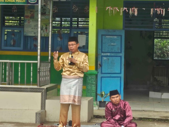 Kepala Madrasah, Dr. Syafri Juara, S.Pd, M.Pd turut hadir dan memberikan arahan kepada para peserta. Dalam sambutannya, Dr. Syafri, S.Pd, M.Pd Juara menekankan pentingnya bersyukur dalam kehidupan sehari-hari. Ia menjelaskan bahwa syukur dapat diwujudkan melalui tiga cara, yaitu syukur lisan, syukur hati, dan syukur perbuatan.