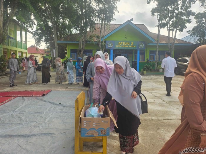 MTsN 2 Sungai Penuh menggelar kegiatan Aksi 3S (Segenggam Beras, Sebutir Telur, dan Seribu Rupiah) pada Jumat, 7 November 2025. Kegiatan ini berlangsung di lingkungan madrasah dan diikuti oleh siswa serta guru. Aksi 3S merupakan bagian dari program rutin madrasah yang bertujuan menanamkan nilai kepedulian sosial kepada para siswa.
