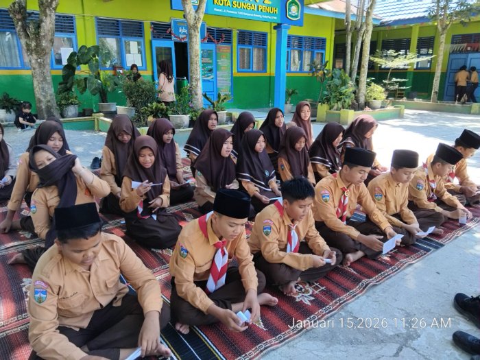 Dalam rangka persiapan peringatan Isra Mi'raj Nabi Muhammad SAW, MTsN 2 Sungai Penuh melaksanakan kegiatan latihan nasyid yang melibatkan siswa dan siswi pada Rabu, 15 Januari 2026. Kegiatan ini dilaksanakan di lapangan madrasah dengan suasana yang tertib dan penuh semangat.
