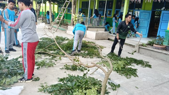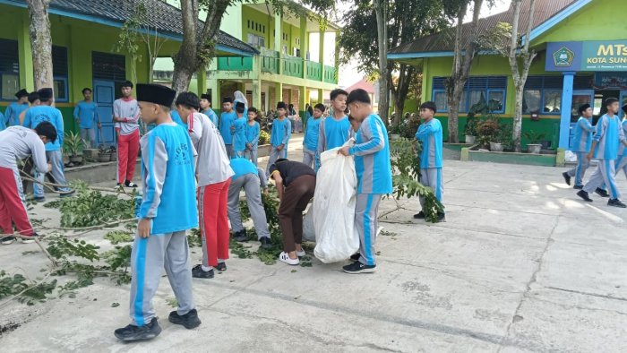 MTsN 2 Sungai Penuh menggelar program kurikulum berbasis cinta melalui kegiatan gotong royong membersihkan lingkungan madrasah. Kegiatan ini berlangsung pada Sabtu, 7 Februari 2026, dan melibatkan warga madrasah, mulai dari siswa, guru, hingga staf.