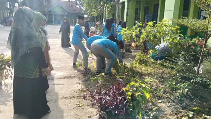 Kepala Madrasah, Dr. Syafri Juana, S.Pd, M.Pd, hadir secara langsung untuk mendampingi dan ikut serta bersama para siswa dalam membersihkan lingkungan. Kehadiran pimpinan madrasah ini menjadi contoh nyata bagi seluruh peserta dalam menanamkan semangat kepedulian dan kencintaan terhadap lingkungan sekitar.
