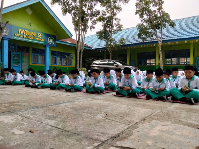 MTsN 2 Sungai Penuh secara rutin menyelenggarakan kegiatan keagamaan sebagai bagian dari upaya membentuk lingkungan pendidikan yang religius dan harmonis. Dengan adanya kegiatan seperti yasinan dan tahlilan, diharapkan seluruh peserta didik dapat tumbuh menjadi pribadi yang berakhlak mulia serta memiliki pemahaman agama yang baik. Kegiatan ini juga mendukung terciptanya suasana madrasah yang kondusif untuk pembinaan karakter dan penguatan nilai-nilai keislaman di kalangan siswa.