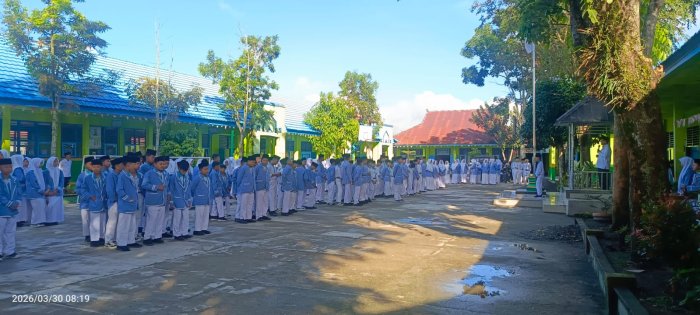 MTsN 2 Sungai Penuh menggelar upacara bendera perdana pada Senin, 30 Maret 2026. Kegiatan ini berlangsung di lapangan madrasah dan diikuti oleh siswa, guru, serta staf madrasah. Upacara bendera merupakan salah satu kegiatan rutin yang bertujuan menanamkan nilai-nilai kebangsaan dan kedisiplinan kepada para siswa.