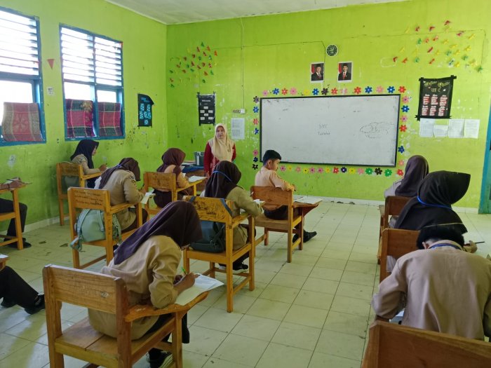 Para siswa Madrasah Tsanawiyah Negeri (MTsN) 2 Sungai Penuh mengikuti ujian madrasah hari keempat pada Kamis, 23 April 2024. Ujian ini merupakan salah satu tahapan penting dalam proses kelulusan siswa di tingkat madrasah tsanawiyah.